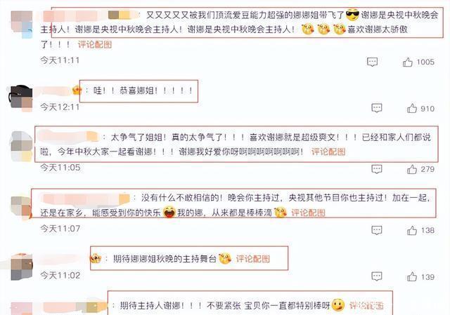 她的激动反应迅速登上热搜,网友们在评论区纷纷送上鼓励:“娜娜勇敢飞,粉丝永相随!”“期待看到不一样的主持风格!” 02明星阵容曝光 官方公布的首波演出阵容同样令人振奋。根据央视新闻消息,今年中秋晚会已经确认的嘉宾包括 陶玉玲、肖桂云、宋晓英、沈腾、周冬雨、易烊千玺 等。
