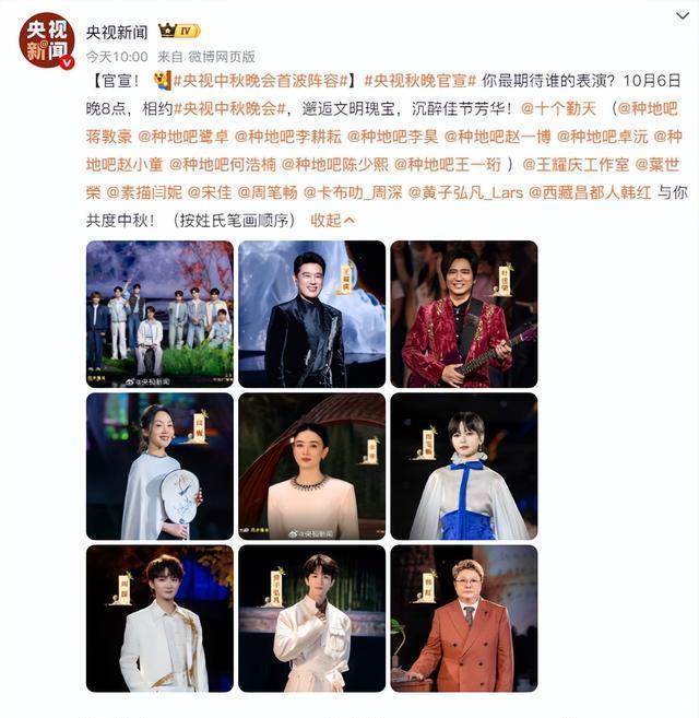 更完整的演出名单显示, “种地男团”十个勤天 将首次登上秋晚舞台。