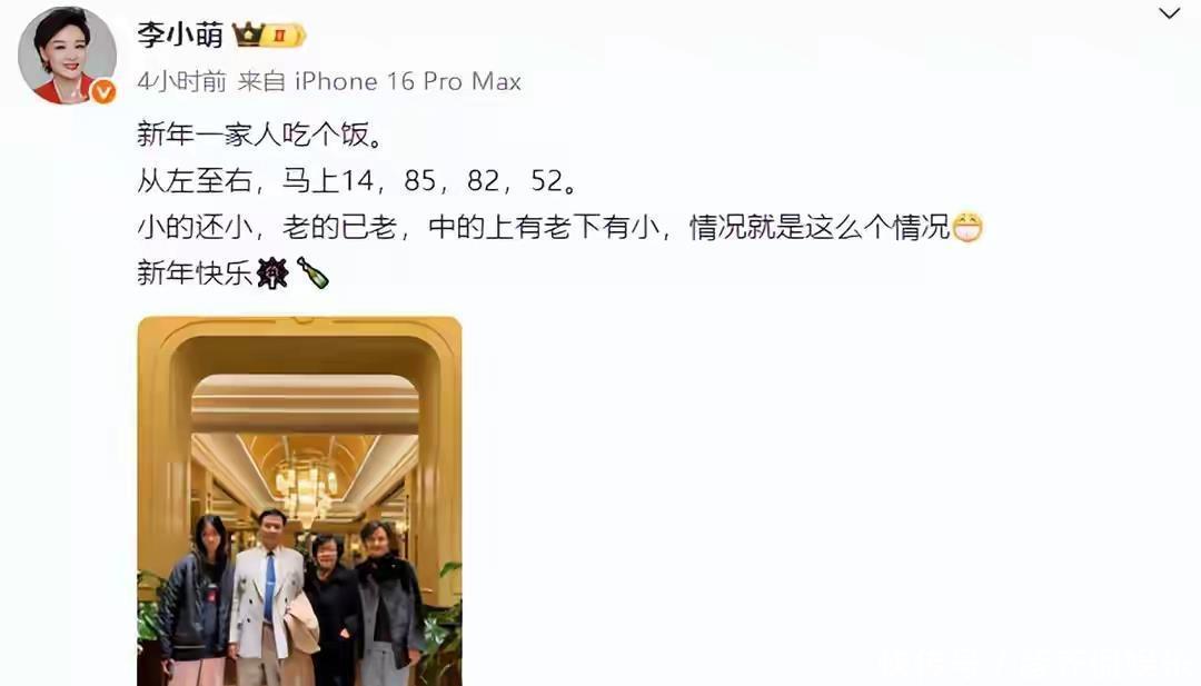 在阅读文章前,麻烦您点下“关注”,方便您后续讨论和分享,感谢您的支持,我将每天陪伴你左右。“瞧瞧!李小萌这张全家福里到底有啥秘密?”一张照片让全网都坐不住了——52岁的她穿着黑皮草配牛仔裤,站在85岁老爸和82岁老妈中间,14岁闺女披着黑长发比她还高半头,这画面直接让人惊掉下巴!