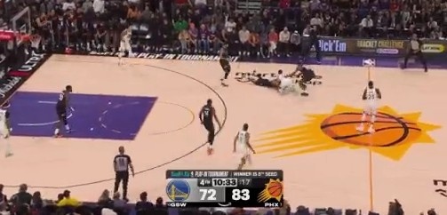 好在是没丢!古德温倒地逼抢库里形成争球 库里跳赢